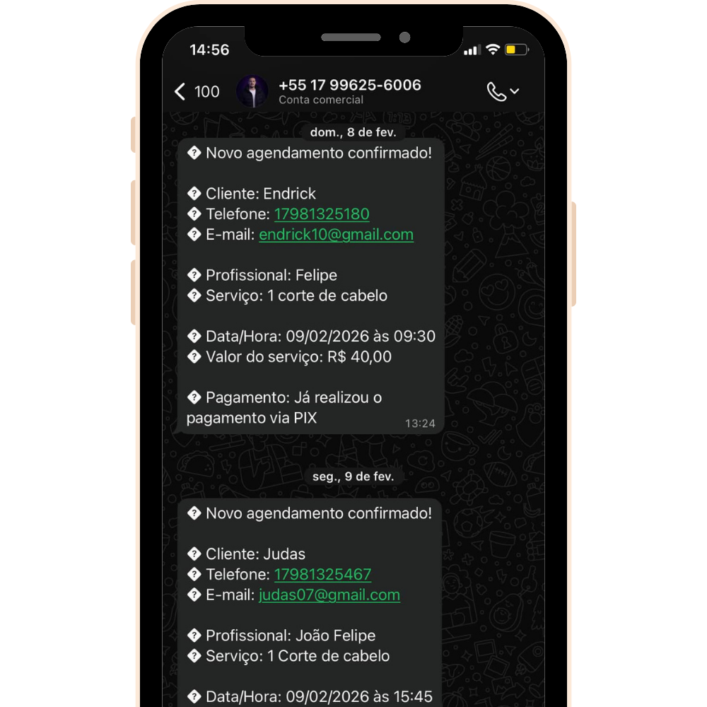 ✔️ Lembretes automáticos via WhatsApp